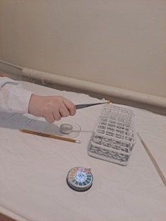 Uczniowie klas starszych na zajęciach alchemii badali m.in. właściwości kwasu etanowego (octowego). Wykorzystywano fartuchy ochronne, bagietki – Zestaw do badania powietrza, Zestaw do badania wody, pęsety Szalki Petriego – świeczki T-light, paski wskaźnikowe do badania wartości pH. Wszystkie tego typu zajęcia odbywały się w pracowni, która została umeblowana w ramach projektu, t.j. stoliki, regały, taborety obrotowe, szafki, szafy. Uczniowie przeprowadzali doświadczenia przy zakupionych do tego celu stołach zajęciowych.