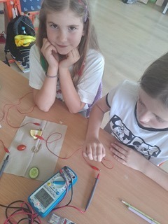 i warzywne ogniwa. Wykonywali pomiary SEM skonstruowanych ogniw. Na zajęciach wielokrotnie został wykorzystany miernik uniwersalny, fizyczne stacje doświadczalne – prąd i obwody elektryczne.