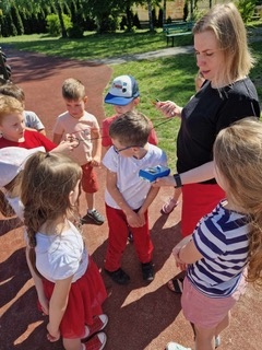 Uczniowie młodszych klas badali m.in: temperaturę powietrza, nasłonecznienie oraz poziom hałasu na szkolnym placu zabaw